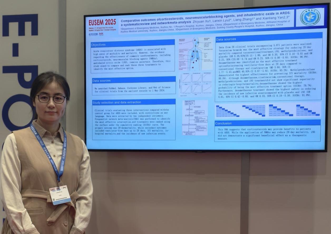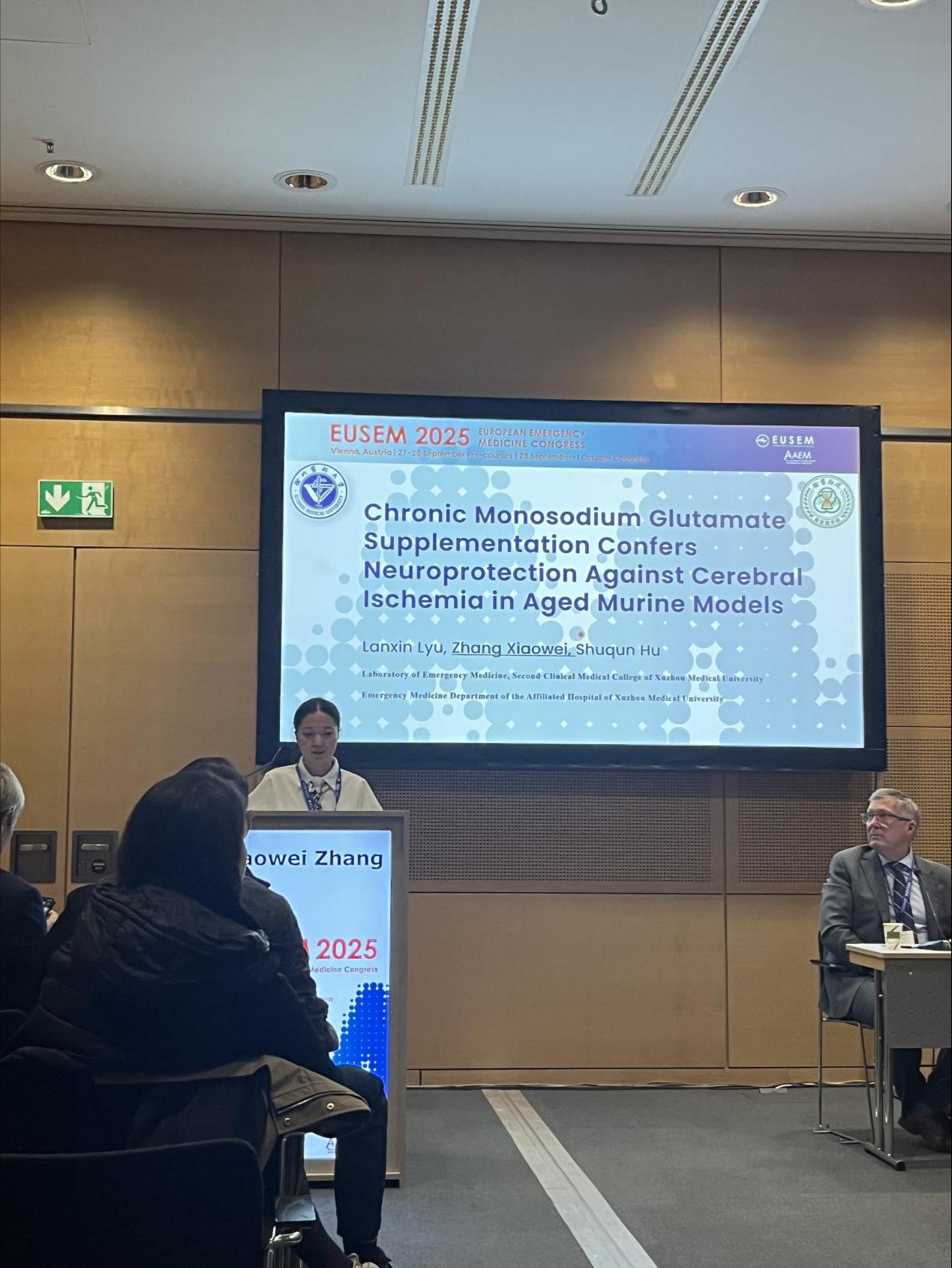 我院急救与救援医学系吕兰欣副教授、庄伟副教授及在读研究生张小伟同学参加此次大会,团队通过一场口头报告和两项壁报展示,向世界展示了来自徐州医科大学急诊医学的创新研究与临床探索。团队带来的研究成果覆盖了从临床治疗策略优化到神经系统损伤创新机制探索的多个前沿领域,引发了与会同行的广泛兴趣与热烈讨论。