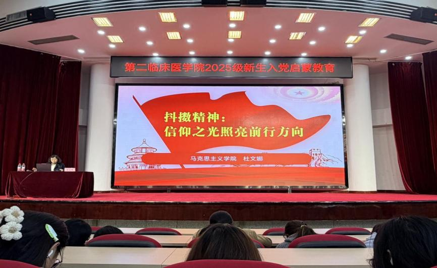 马克思主义学院杜文娜老师以“信仰之光照亮前行方向”为主题,引导同学们思考“人为什么要有信仰”。她特别勉励2025级新生,要将信仰的力量转化为刻苦学习的动力,以"强国有我"的担当走好属于这一代人的长征路。