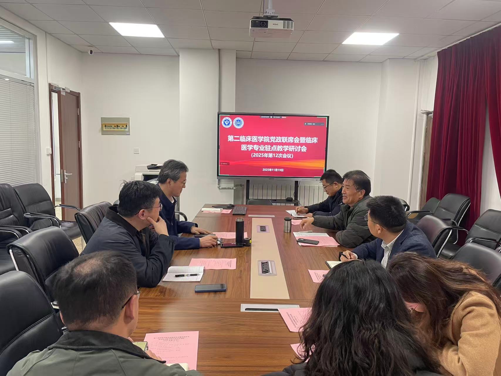 会议首先由钟卫权副院长通报了上周对各驻点医院临床教学检查、师生座谈会的情况,分析了学院儿科学、精神医学、眼视光医学和临床医学(急救与救援医学)专业在各驻点医院不同班级的期中考试成绩,毕业班的临床课程毕业考试理论综合考试成绩和执业医师考试通过率,对今后的教学工作提出计划和建议。各驻点教学医院分管领导做了交流发言,表示将与学校密切配合,做好驻点教学工作,提高教学质量。孙甫存对各驻点教学医院在学生培养工作中付出的辛勤努力和取得的成绩给予了充分肯定,并表示学院将持续深化与各驻点教学医院的教学交流与合作,完善教学质量动态监测机制,为推动医教协同创新、培育复合型人才提供有力支撑。