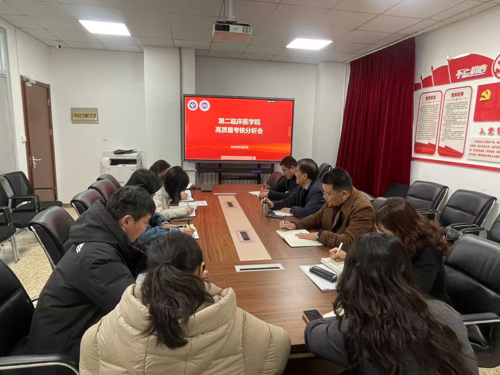为深入贯彻落实学校发展战略,进一步促进高质量发展,3月2日上午,第二临床医学院在综合楼305会议室召开2026年度学院高质量发展研讨会。会议聚焦《徐州医科大学 2025 年度高质量发展综合考核实施办法》,结合2025年度学院高质量发展综合考核结果及反馈意见,系统谋划并部署2026年重点工作。会议由学院党委书记刘立忠主持,学院领导及各科室负责人参加。