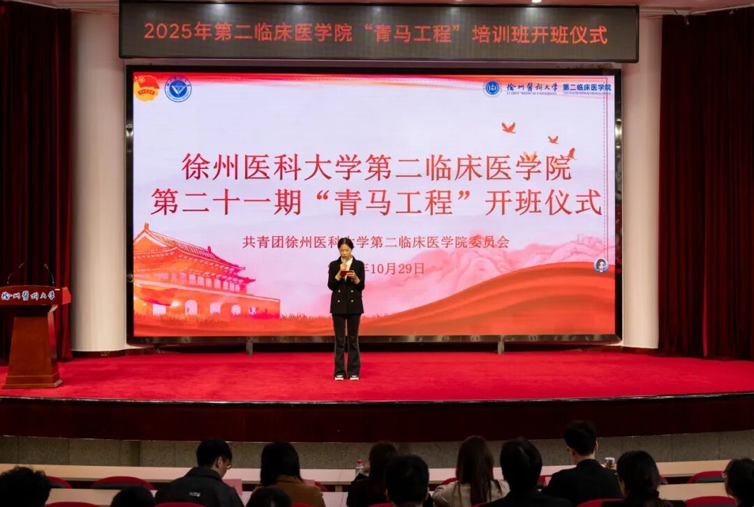 为将马克思主义中国化最新成果转化为青年可感可知的精神滋养,引导青年汲取奋进动力、涵养家国情怀,助力青年成长为兼具理论清醒与文化自信的新时代先锋,10月29日,我院在学术报告厅隆重举行了2025年第二临床医学院“青马工程”培训班开班仪式。学院党委副书记李红梅、学工办主任孙瑜、分团委书记马君程、各年级辅导员、第二十期院级青马工程培训班优秀学员代表、第二十一期院级青马工程培训班全体学员、学院学生组织成员以及各年级班委参加了此次开班仪式。开班仪式由第二临床医学院24本听力班的白瑜涵主持。