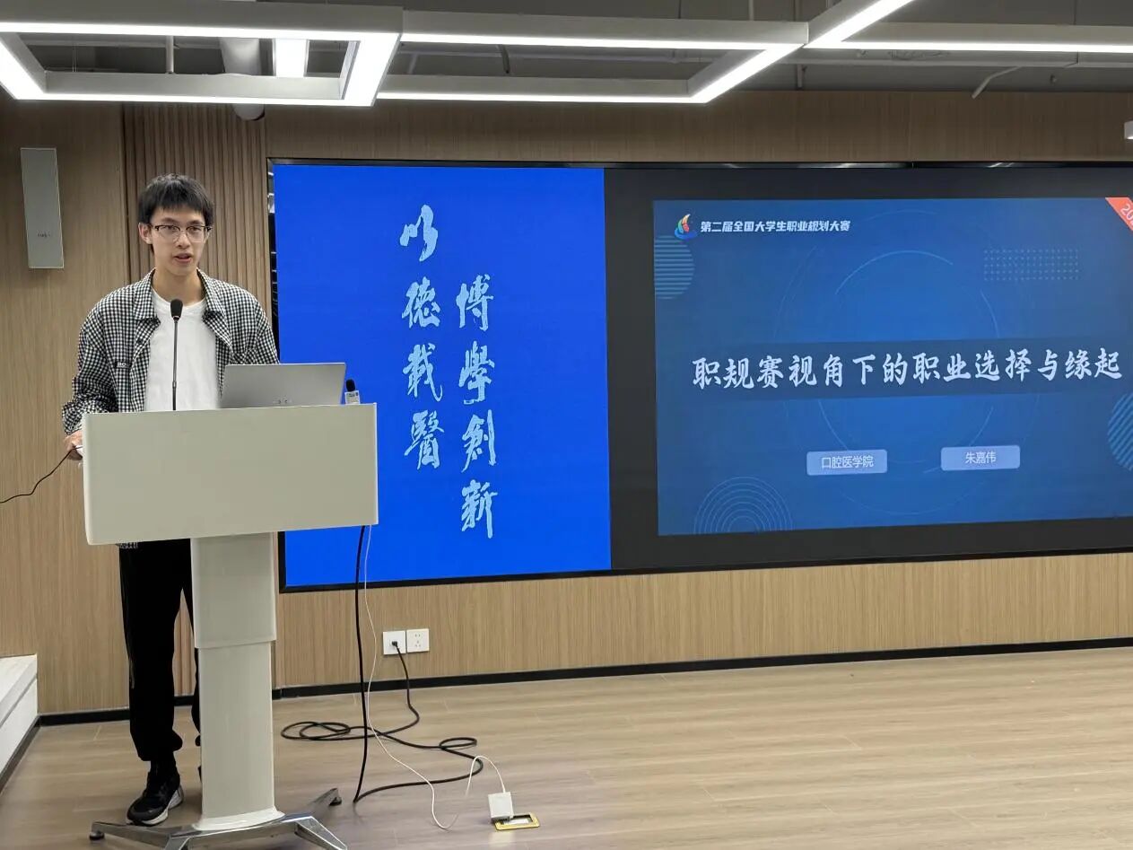 学院还特邀第二届全国大学生职业规划大赛金奖获得者口腔医学院朱嘉伟同学分享了参赛经验。