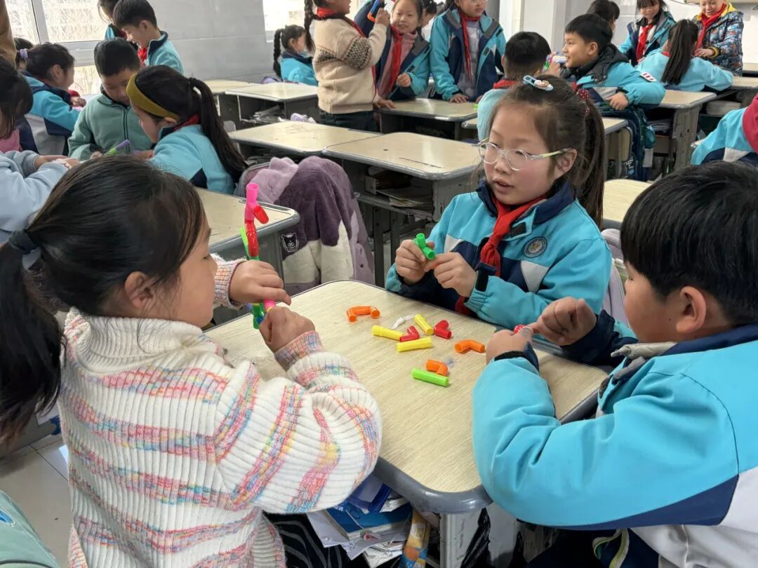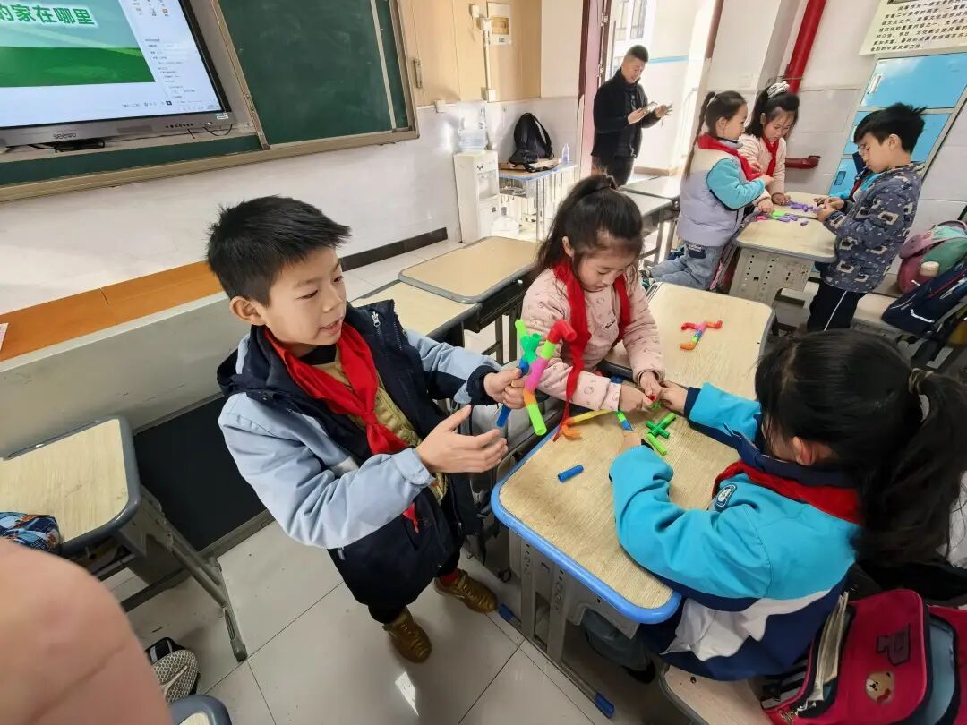 理论知识过后,迎来了孩子们最期待的实践环节。志愿团为同学们准备了色彩鲜艳、种类丰富的管道拼接小玩具,涵盖直管、弯管、三通管、变径管等多种组件,让孩子们化身“小小管道工程师”。在志愿者的耐心指导下,孩子们分组协作,有的专注搭建笔直的长距离输送管道,有的巧妙设计分叉管线模拟能源分流,还有的发挥创意,用弯曲管道适配不同的“地形”障碍。