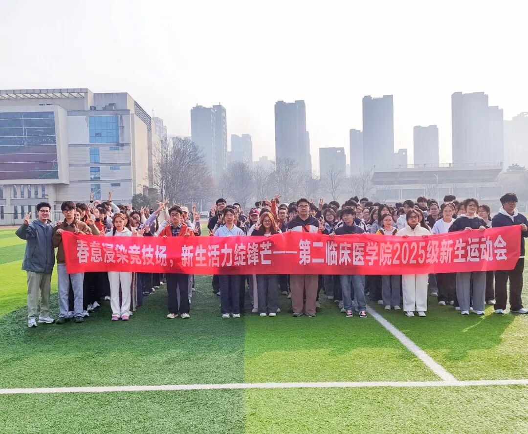 为丰富校园文体生活,鼓励同学们走出教室、积极参与户外锻炼,进一步增强班级向心力与集体凝聚力,3月21日,第二临床医学院在主校区操场顺利举办2025级新生运动会,全体2025级学生踊跃参赛。本次运动会集竞技性与趣味性于一体,既为同学们提供了展示自我、超越自我的舞台,也让大家在运动中放松身心、增进情谊,在赛场上展现出昂扬向上、团结奋进的青春风貌。